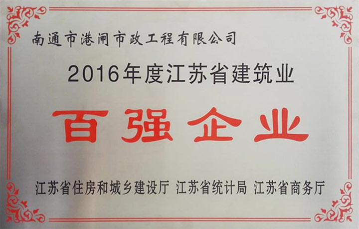 2016年度江蘇省建筑業(yè)百強企業(yè)
