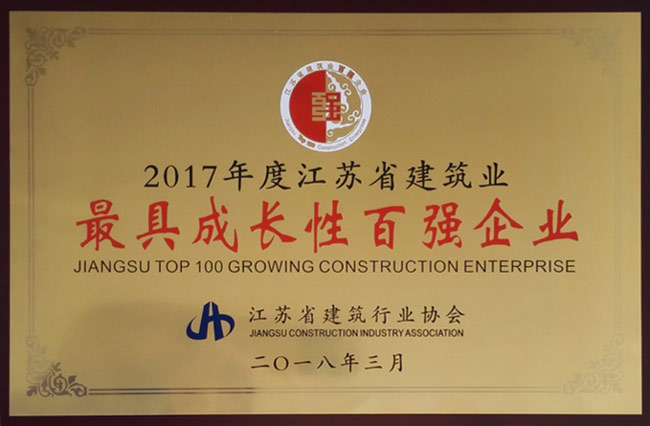 2017年度江蘇省建筑業(yè)最具成長性百強企業(yè)