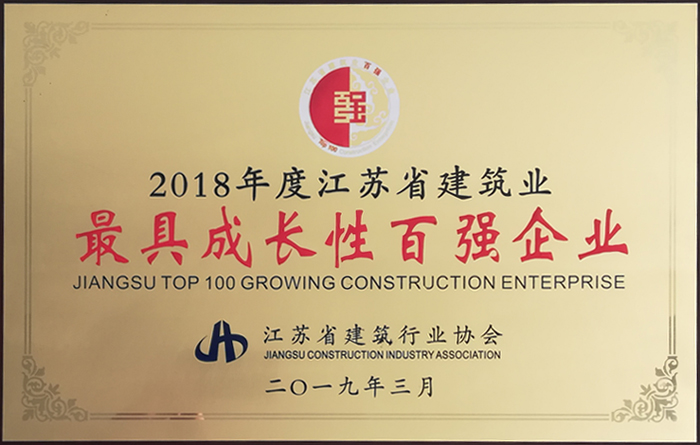 2018年度江蘇省建筑業(yè)最具成長性百強企業(yè)