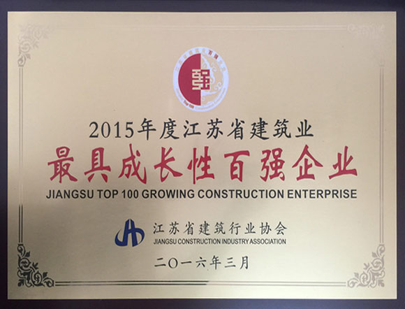 2015 年度江蘇省建筑業(yè)最具成長性百強企業(yè)